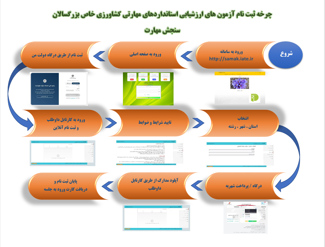 دوره های سنجش مهارت هر فصل اجرا میشود و رشته های آن سالانه توسط آموزش و پرورش تایید میگردد.در سال جاری رشته تولید و پرورش گل و گیاهان زینتی ، کشت و کار مکانیزه، مکانیک تراکتور، زراعت غلات، و گیاهان جالیزی قابل اجرا میباشد. مراحل ثبت نام در تصویر زیر آمده است.